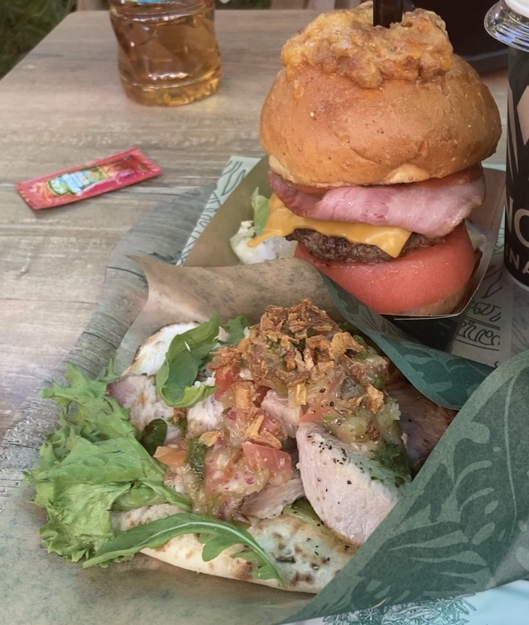 ハンバーガーとポークケバブ、グリルコーンを食べた。