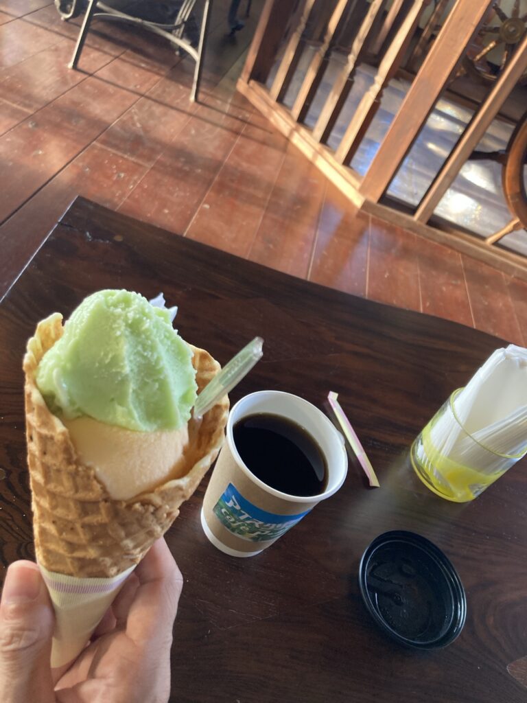 2階にレジがあり、そこでアイスとドリンクを注文。近くの椅子で少し待ってオーダーしたものを受け取ったら好きな席に移動って流れでした。