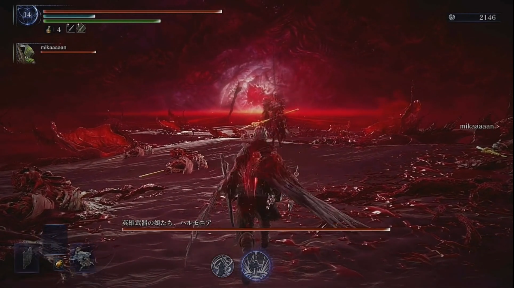 阻止した後、ダウン状態とはいて、ハルモニア達に囲まれた状態になるので、距離を取るのが間に合わないと多数がアクティブになり数的不利でボコられてしまいます。